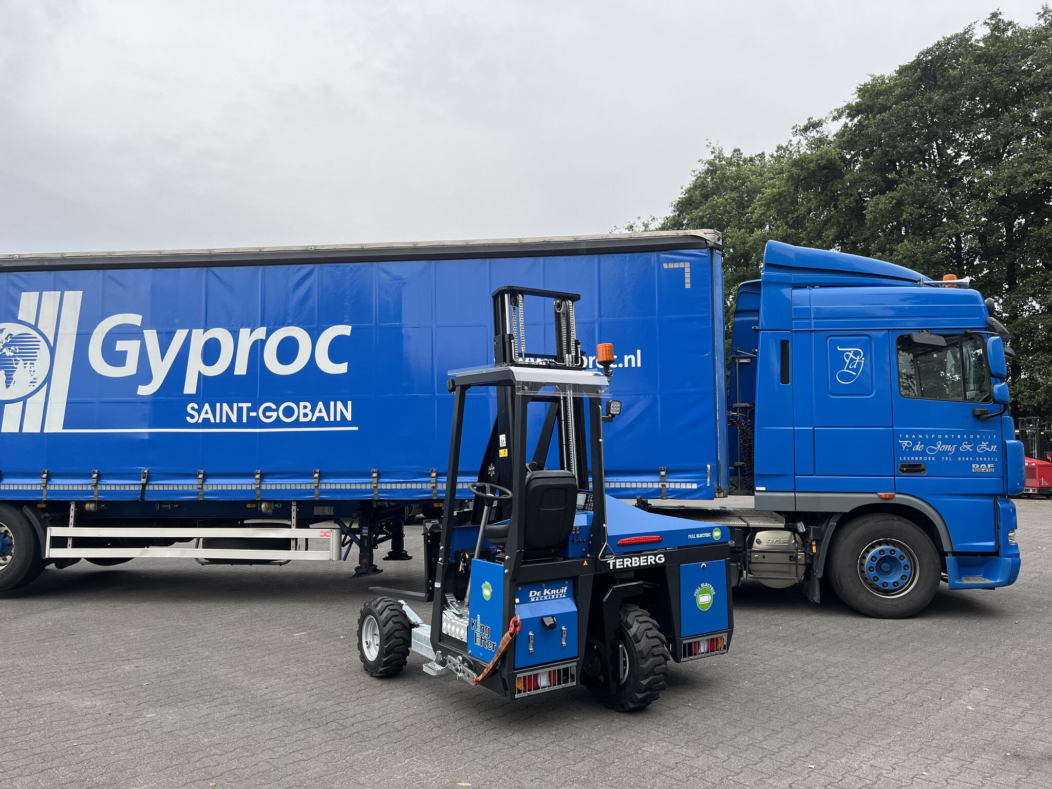 P. de Jong Transport from Leerbroek has recently introduced the fully electric Kinglifter E-TKL for their deliveries to Gyproc Nederland. This powerful machine not only enables emission-free deliveries on construction sites but also offers numerous other benefits for transport companies aiming for efficiency and sustainability. With the Kinglifter E-TKL, Terberg Kinglifter demonstrates that sustainability and performance can go hand in hand.