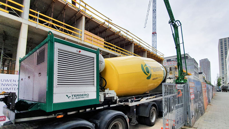 Terberg Techniek introduces an Electric Power Take-off (E-PTO and E-PTO-H2) for the construction industry, which urgently needs solutions to comply with stricter regulations on the emission of CO2 and other pollutants. The E-PTO is developed to replace conventional power take-offs commonly used on trucks to use the power of the diesel engine to drive other applications at building sites.