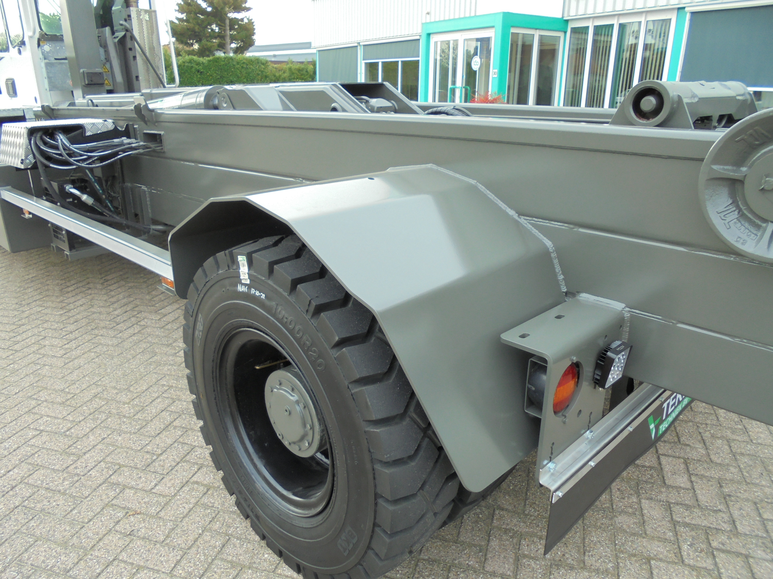 Gereed voor aflevering een Terberg 4x2 Container Carrier voorzien van een nieuw 30 tons haakarmsysteem van VDL Container Systems bv